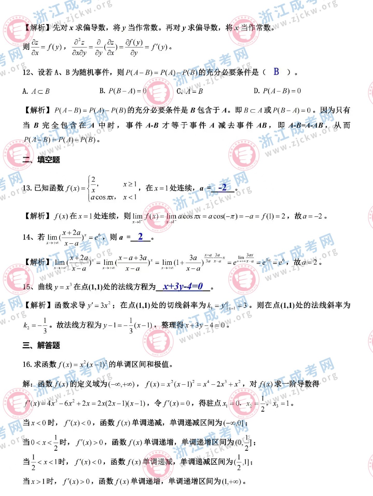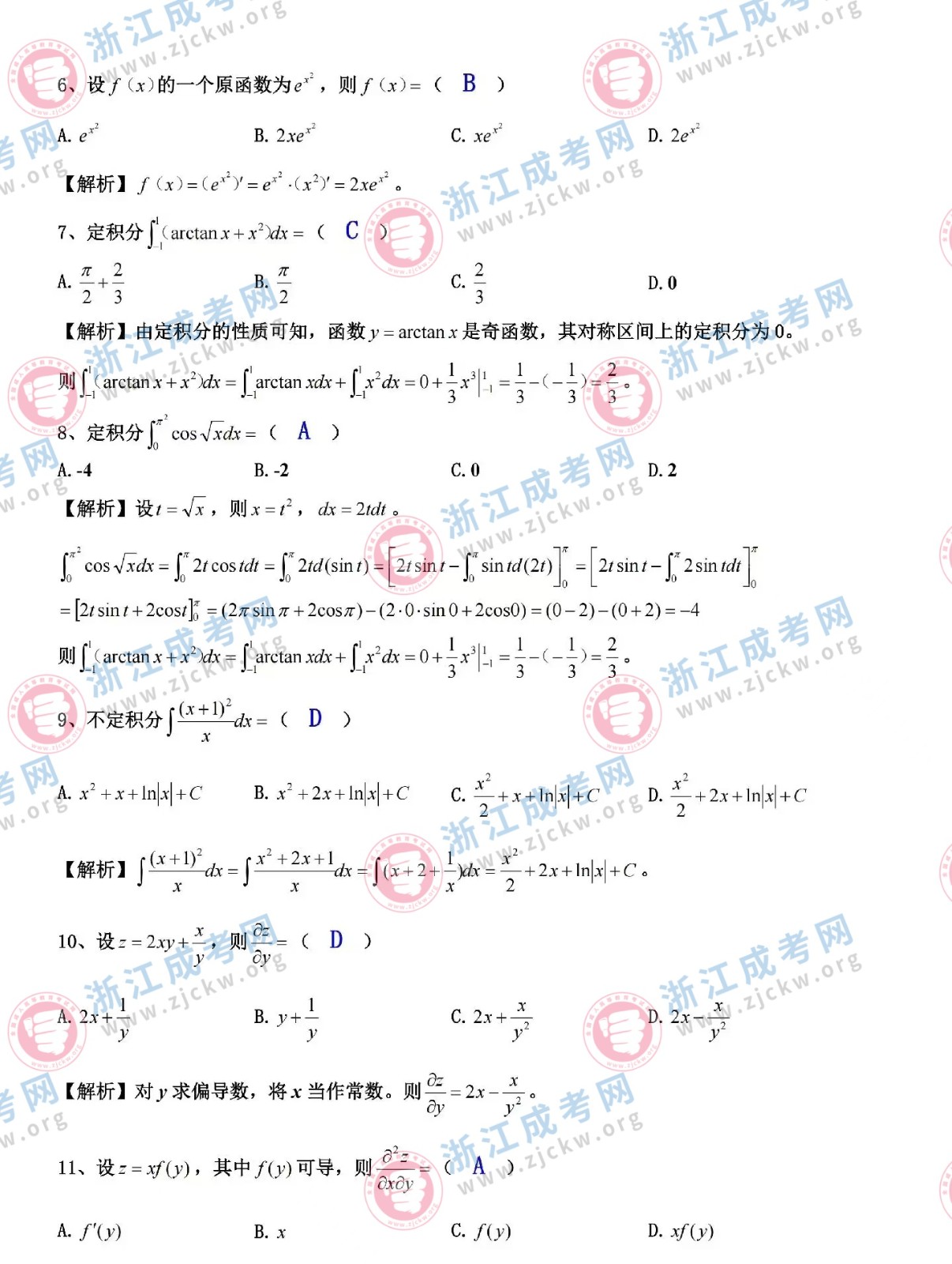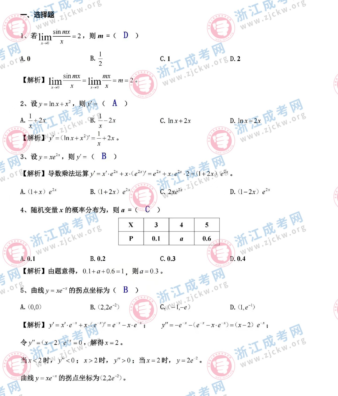 杭州成考網(wǎng)為廣大考生提供2024年成人高考全國統(tǒng)一考試(專升本生數(shù)二)真題答案