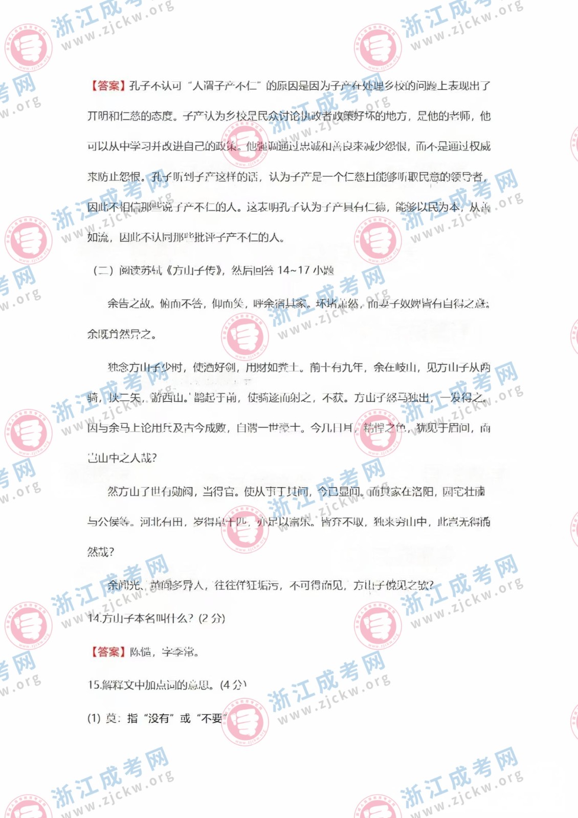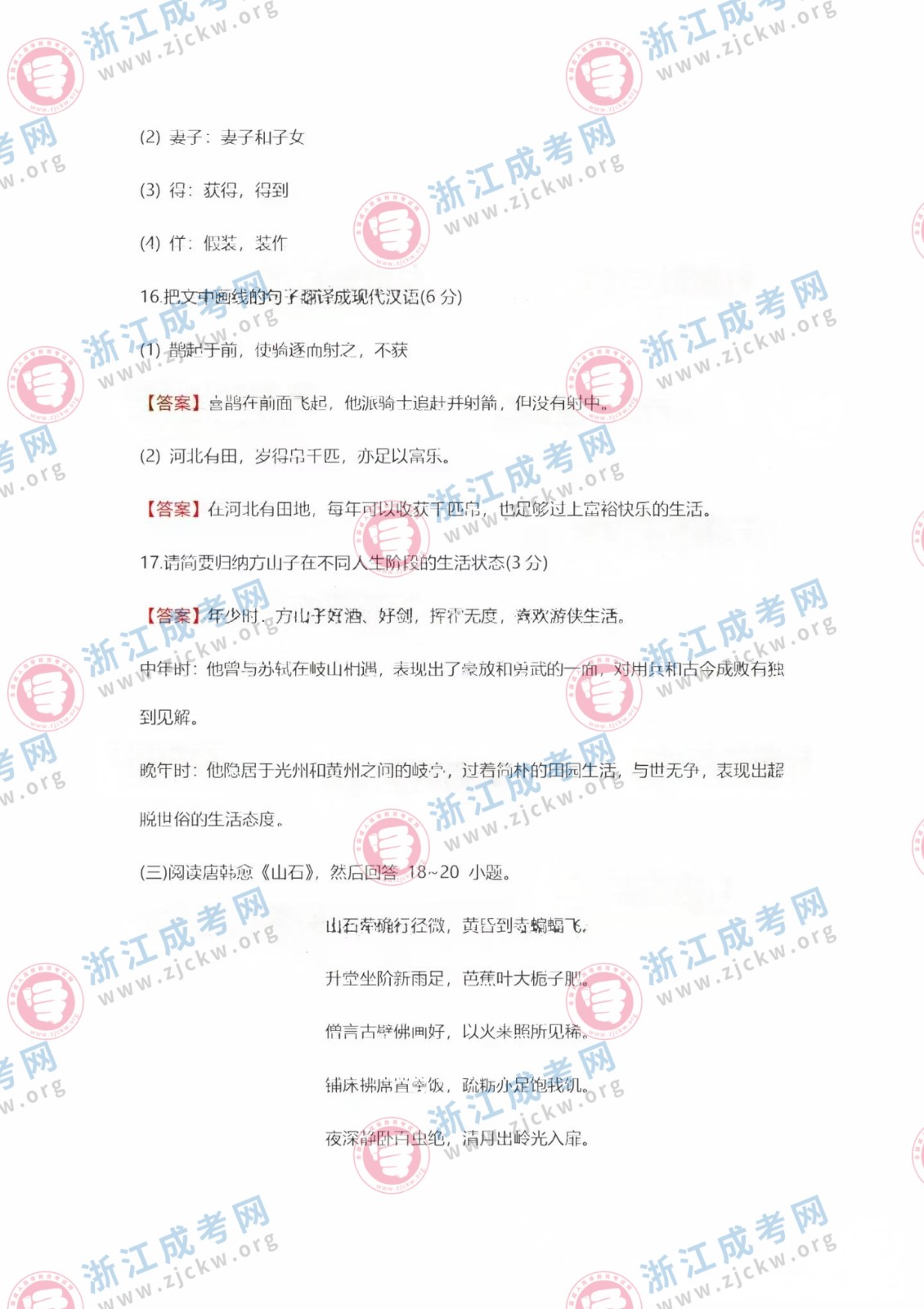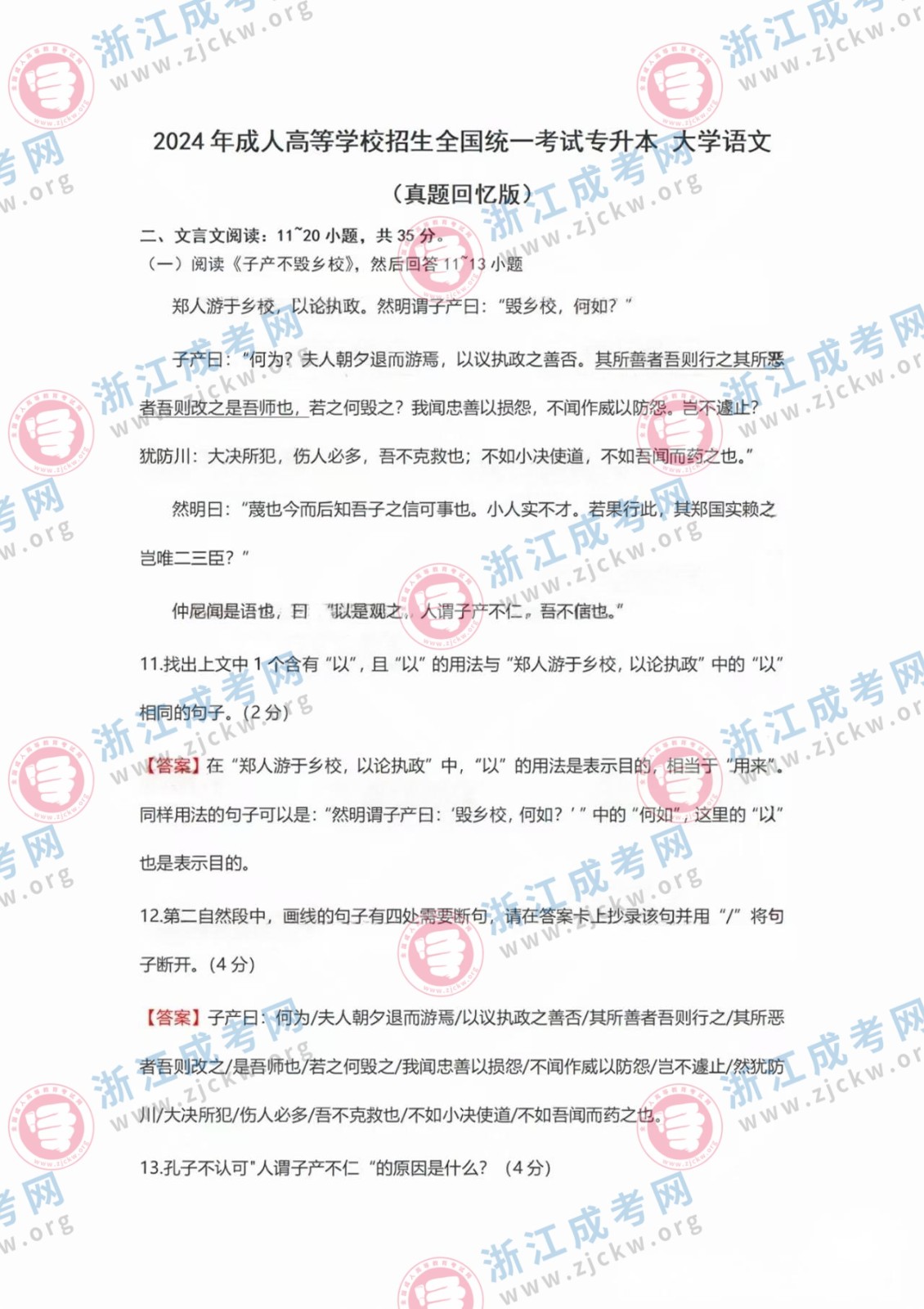 杭州成考網(wǎng)為廣大考生提供2024年成人高考全國統(tǒng)一考試(專升本生大學(xué)語文)真題答案