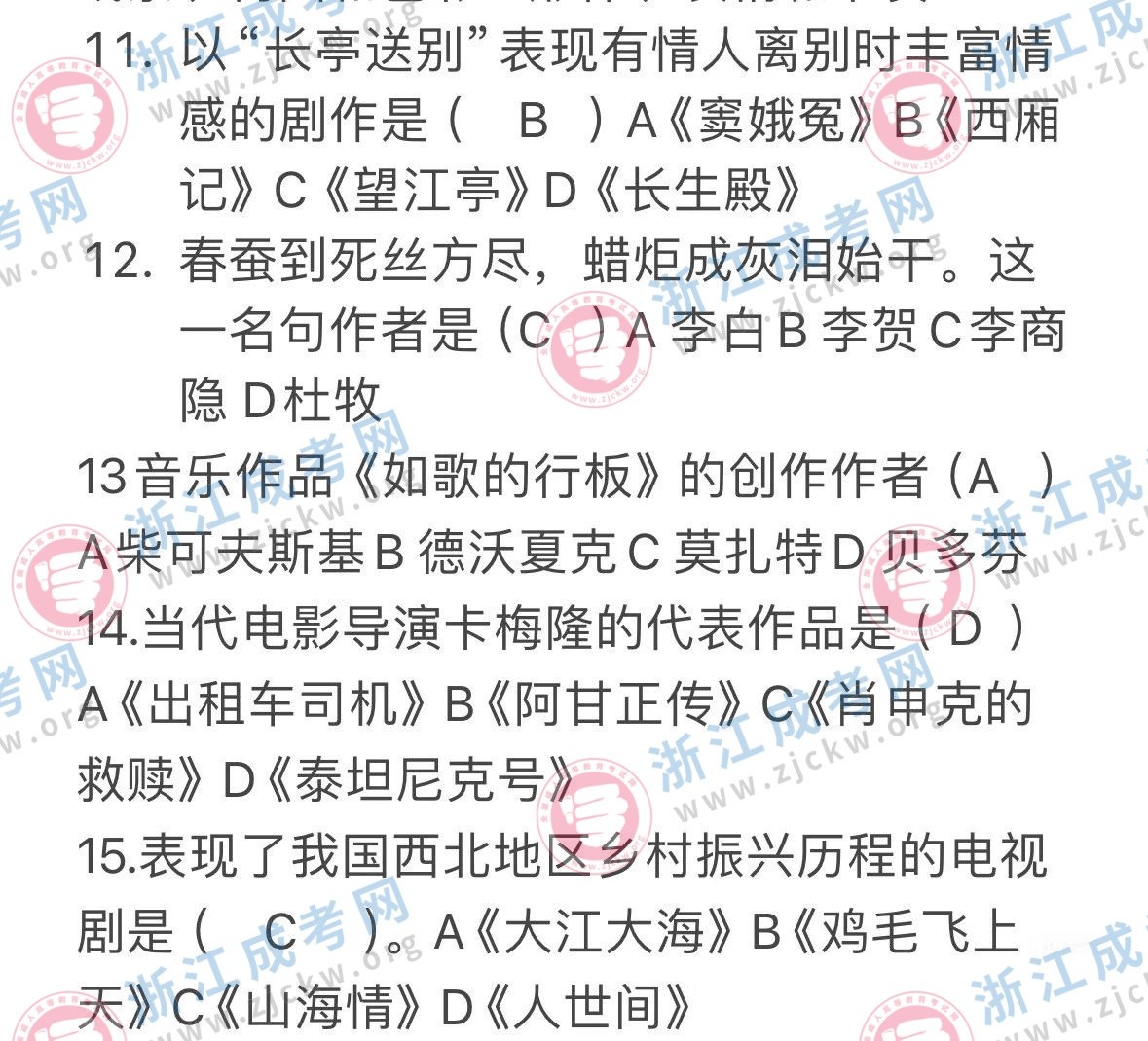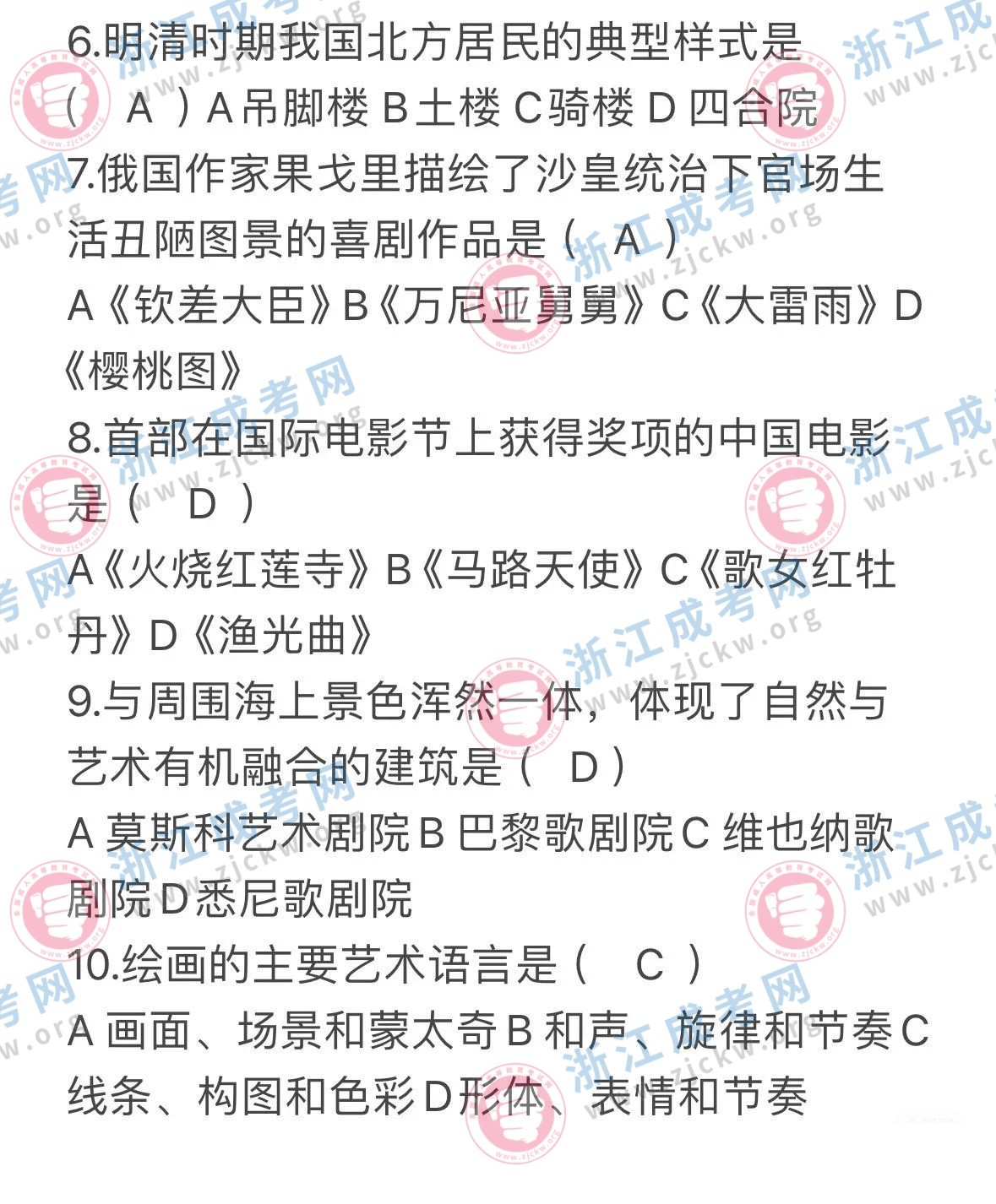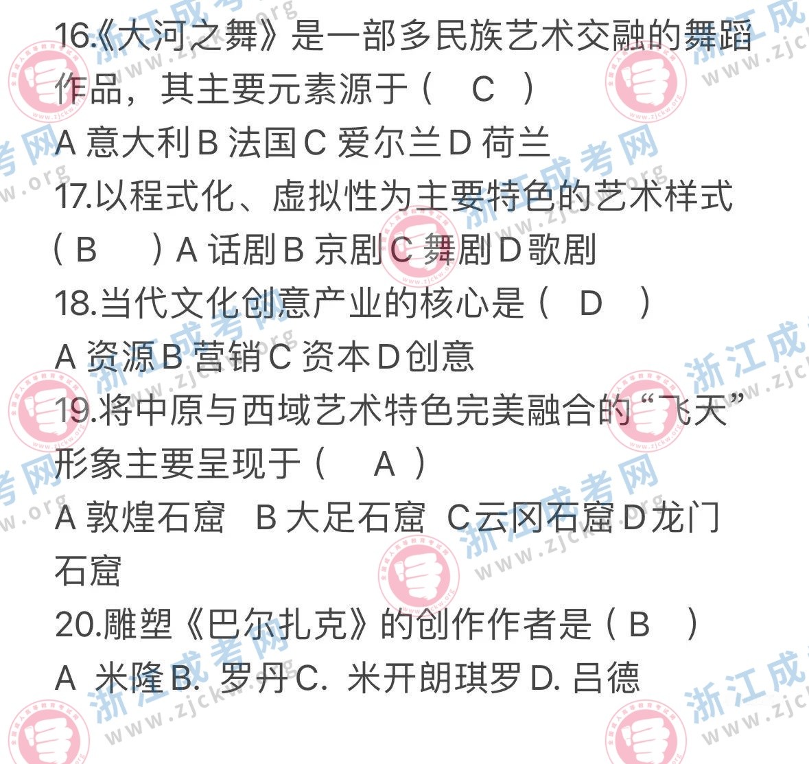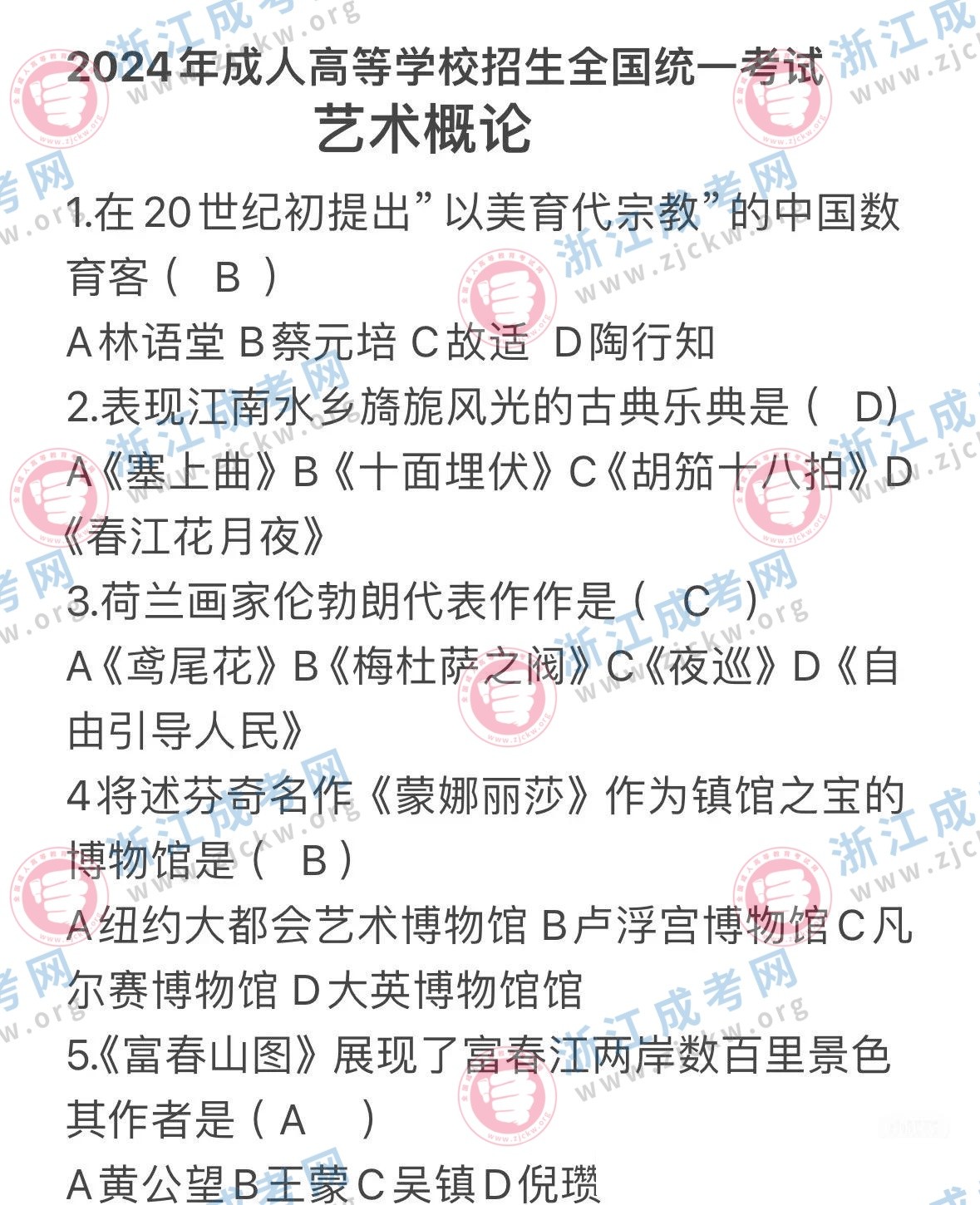 杭州成考網(wǎng)為廣大考生提供2024年成人高考全國統(tǒng)一考試(專升本生藝術(shù)概論)真題答案